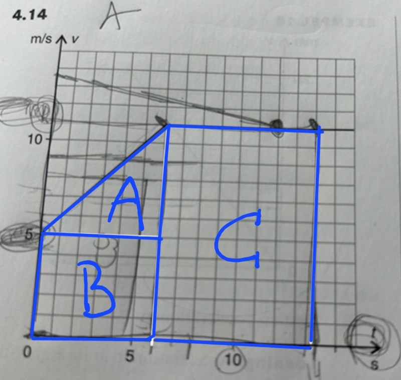 Är du med på att området under grafen kan delas in i tre delområden A, B och C (se bild)?