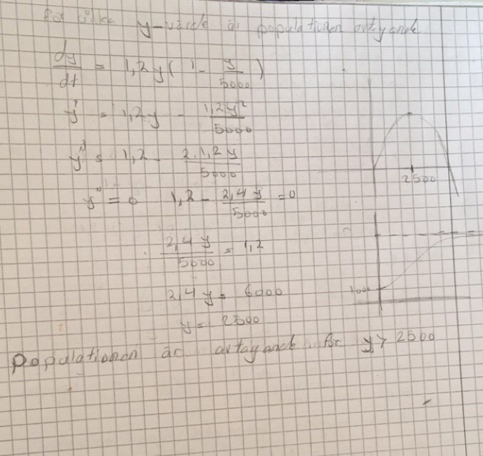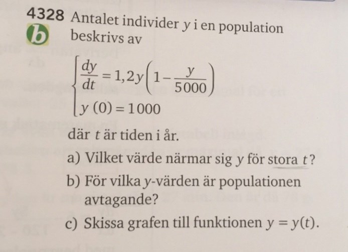 Nej, jag håller inte med. Det står i uppgiften att y(0) = 1000. Då kan y(t) inte bli större än 5000.