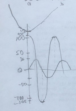 Som ni ser är den väldigt förenklad och inte exakt på något vis, men det jag genast såg var att H.L. ekvation troligen låg ovanför. Mitt första misstag var att jag trodde att vi hade minimum i x = 0, men efter derivering såg jag att så inte var fallet.