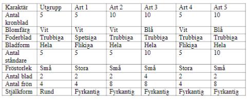 Problemet är att jag har jättesvårt att hitta det bästa släktträdet, eftersom att det finns så många egenskaper att hålla reda på och det går att sätta ihop dem på så sjukt många sätt. Självklart kan man ofta utesluta många rätt snabbt men ändå. Jag gjorde ett försök utifrån matrisen nedan men får 11 förändringar istället för 9, vilket är för mycket...