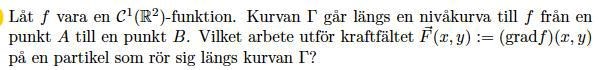 Gradienten till f är vinklerät med tangenten till nivåkurvor till f, arbetet är lika med 0??!