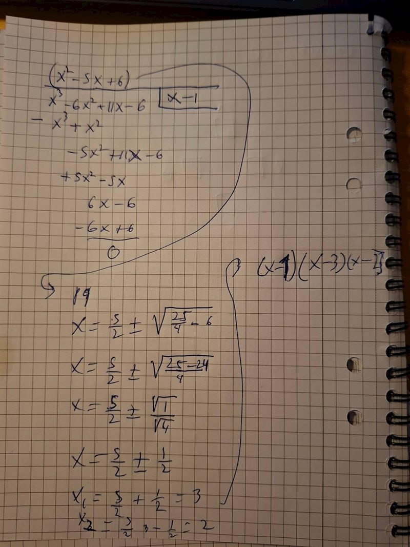 Nu ska jag då dela (x³-6x²+11x-6)/(x-1) vilket blir: