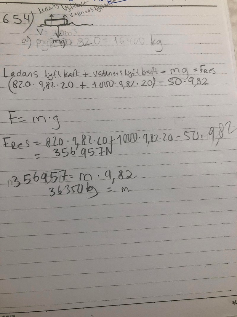 Ska jag räkna medF(tyngd) =pvg=820*20*9.82