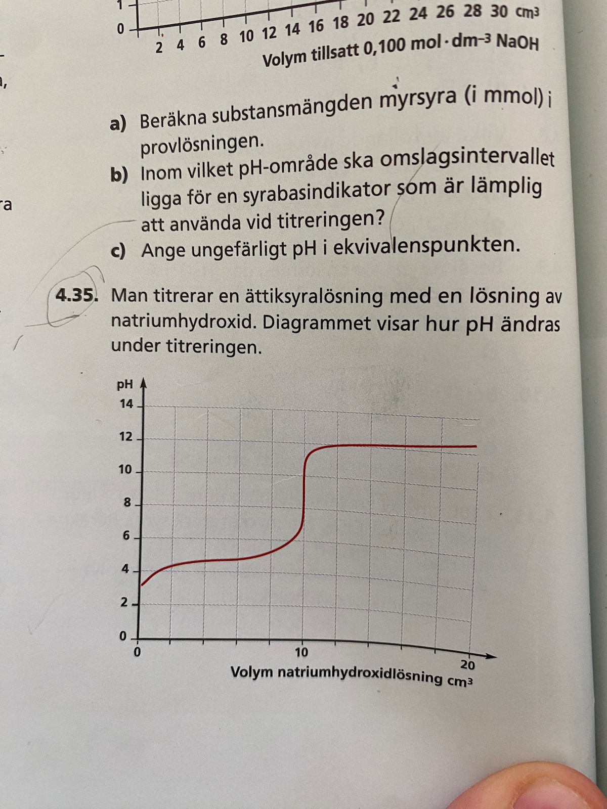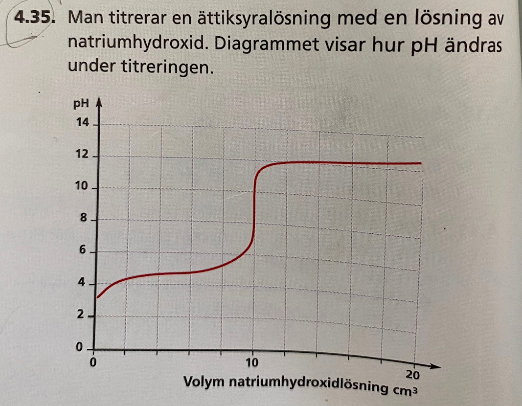 i b) så förstår jag inte hur jag ska se att Substansmängden 'r lika stor som substansmängden ättiksyra i initiala lösningen??