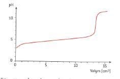 Vid titrering av en okänd svag syra med natriumhydroxidlösning [0,150 mol/dm3] erhöll man denna titrerkurva: