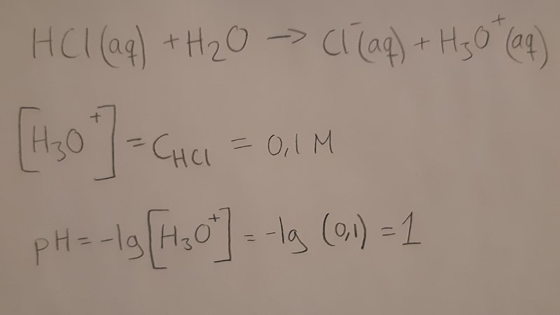 SvanteR skrev:Jag ser att du har skrivit att koncentrationen H3O+ blir 0,1 M, men jag ser ingen uträkning (och tyvärr är det fel svar).
