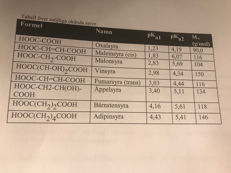 ⇒ n(okänd syra) = 1,65 * 10^ -3 mol