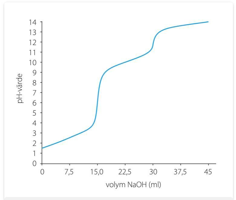 VNaOH = 15,0 ml = 0,015 dm3. (Osäker om denna är rätt? Läste mest utifrån grafen, men kan det även vara 0,030 dm3?)