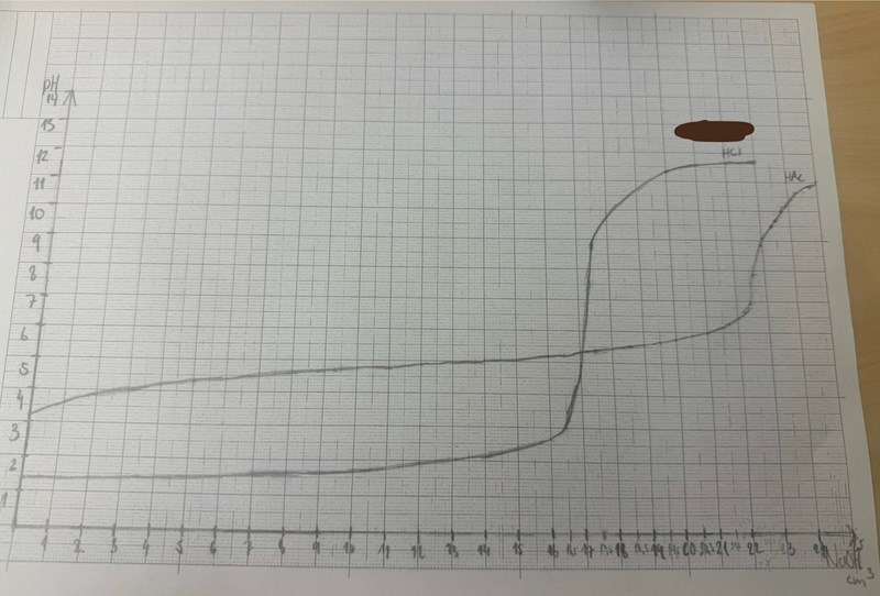 Fattar inte varför titreringskurvan för svaga syran (HAc) ser ut som den gör på början, den lilla kurvan på början. Min gissning är att koncentrationen NaOH ökar pH stadigt tills det når buffertområdet?
