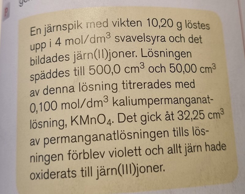 Skulle behöva hjälpa med uppgiften nedan. Det enda jag inte förstår är den första reaktionsformeln i facit. Varför blir kaliumpermanganat MnO-4? Det är en jon och varför är det inte ens med kalium i ämnet? En annan oklarhet är hur manganjonen i högerledet kan få laddningen 2+. Hur kan det förutses?