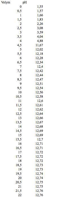 Det verkar som om man har titrerat med NaOH men koncentrationen 0,05 mol /dm^3. Det hade varit mycket bättre om man hade använt NaOH med koncentrationen 0,02(00) mol/dm^3 istället om man ville använda den byretten och de tillsatserna, så hade man fått en myckt bättre kurva i det intressanta pH-området (det är väl inte någon som blir särskilt upphetsad över det som händer efter v = 5 i den här titreringen).
