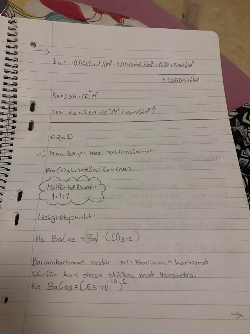 OBS! I ditt svar ska en jämnviktsformel och jämviktsekvation finnas med.