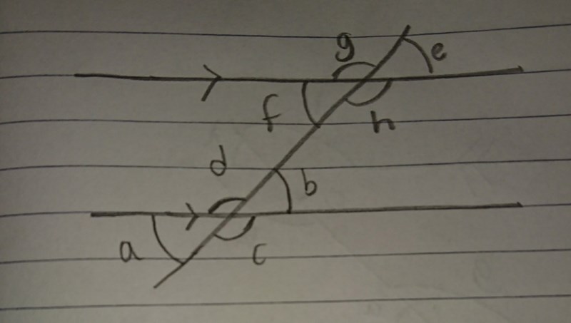 Jo a=e och b=f och c=g och d=hDu kan tänka så här. Vinklarna a b f och e i din figur är alla 45 grader.