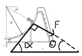 Det var oklart vad du menade med F. Om det var flickans radiella kraft på rutschkanan är den förstås lika med normalkraften.