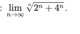 Tack för ditt svar, hur vet vi att 2n + 4n går mot 4n . Går det att ställa upp någon ekvation som leder till att gränsvärdet blir 4, eller handlar det mer om att ha förståelse och se sambandet?