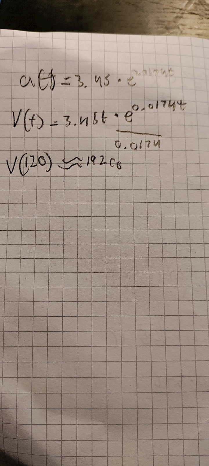 Laguna skrev:Din primitiva funktion är fel. Det ska inte vara en faktor t med.