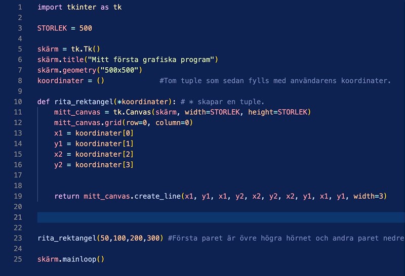 Vi får inte använda oss av inbyggda funktioner. Jag har lyckats skriva en kod som ritar en rektangel men jag vet inte hur jag ska fylla den. Tar gärna emot synpunkter på koden också.