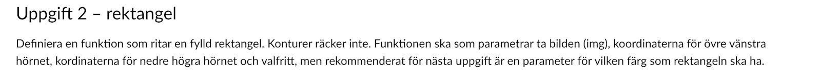 Jag gissar att de tycker du ska ha två parametrar till till din rita_rektangel, img och background, för framtida bruk.