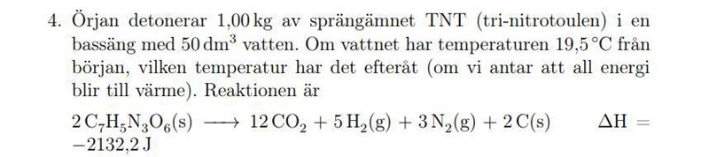 Det känns orimligt att 1kg TNT gör att vattnets temperatur endast siger 0.045 kelvin.