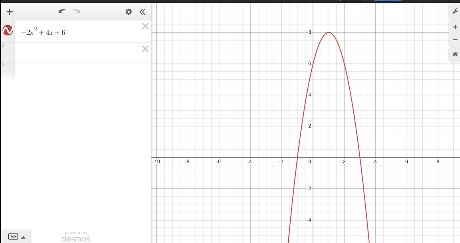 Vi är på grafen då y är lika med -2*x*x+4x+6.