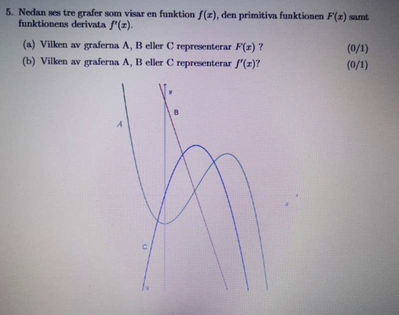 Utifrån detta lyckas jag konstatera att graf A anger den primitiva funktionen. Mer än så vet jag inte hur jag ska tänka