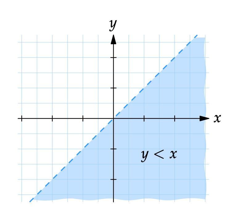 För att visualisera olikheten y<xy<x, gör såhär.