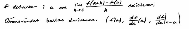 1. Är derivatan ett gränsvärde? I så fall hur vet jag om det existerar?