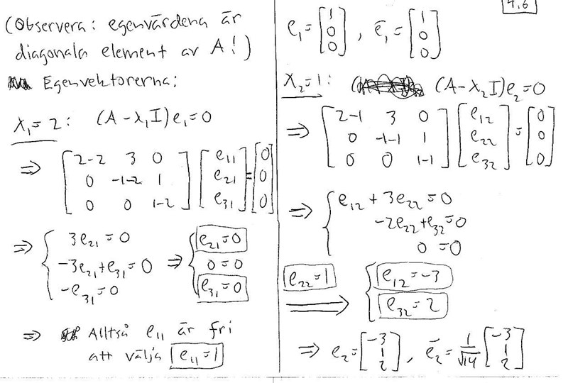 Uppgiften går ut på att finna egenvärden och egenvektorer till