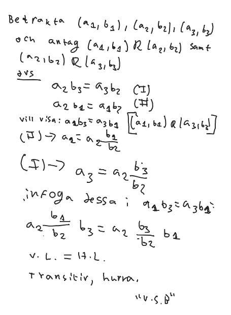 När jag "bevisade" att är transitiv gjorde jag följande. "Bevisade" eftersom det inte är ett bevis. Bara en liten skiss. Därav "V.S.B." inom "-tecken.