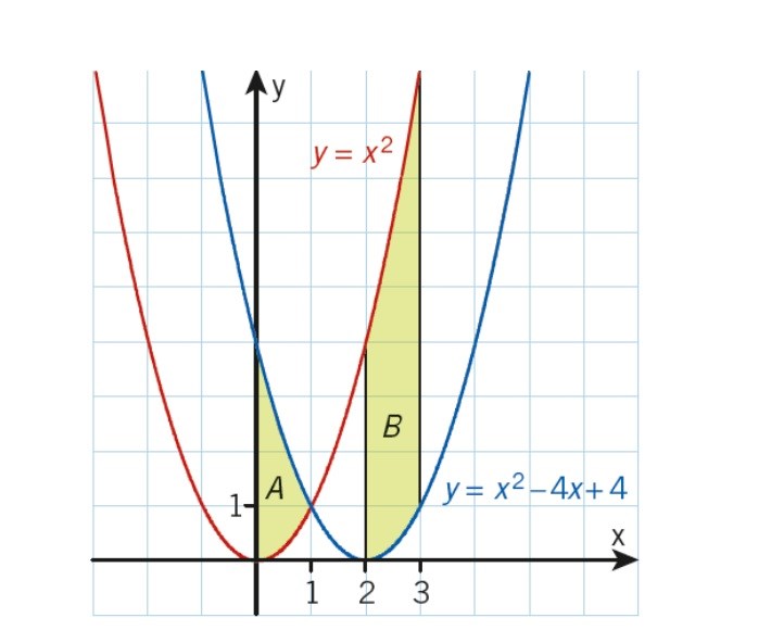 Hej jag har lite svårt att tolka vilken av dessa kurvor (blå eller röd) som är den nedre och övre funktionen till respektive bokstav (A och B), dvs hur kan man vara medveten i A att y=x^2 - 4x +4 är den övre funktionen och inte den nedre i detta fall?
