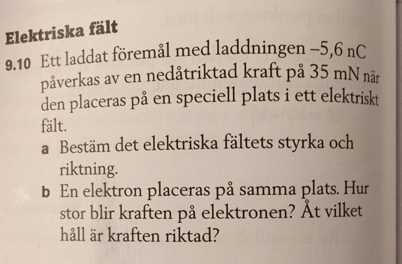 Föremålet placeras på en plats i det elektriska fältet och därmed påverkas föremålet nu av en nedåtriktad kraft.