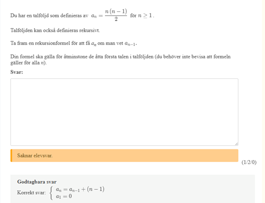Jag ansätte a 1 = 0 och sedan an = a (n-1) + n.