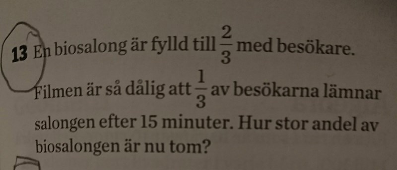 Från början var bio 1/3 Tom, sen lamnade 1/3 av 2/3 så nu är 1/3 Tom så totalt 2/3Tom