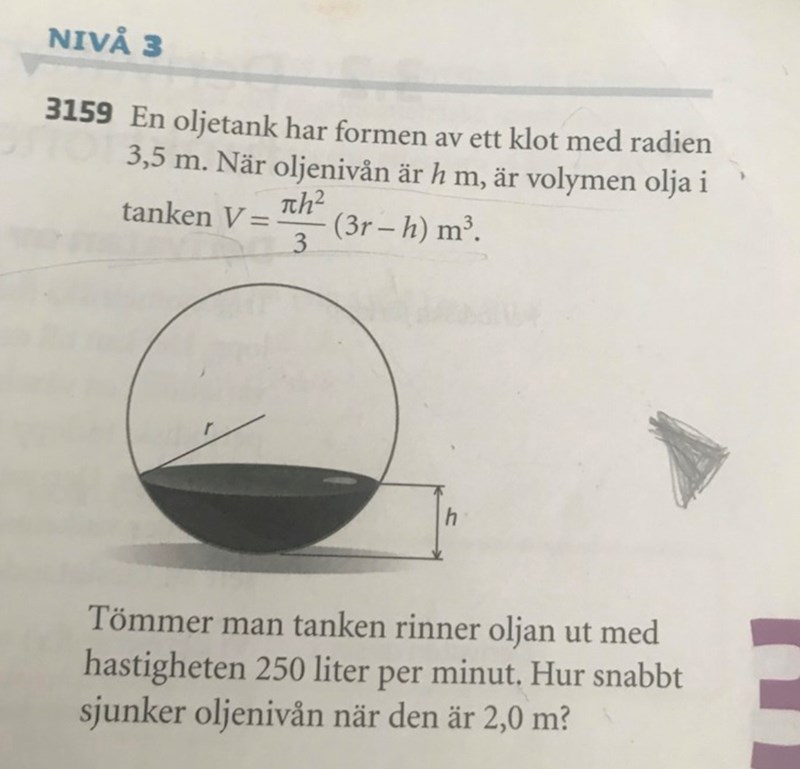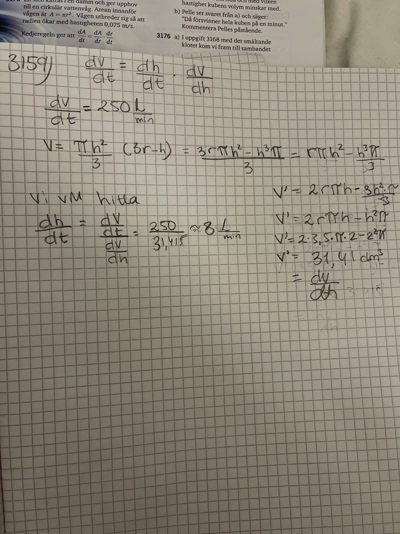Derivatan av den ursprungliga funktionen ger Dv/dh