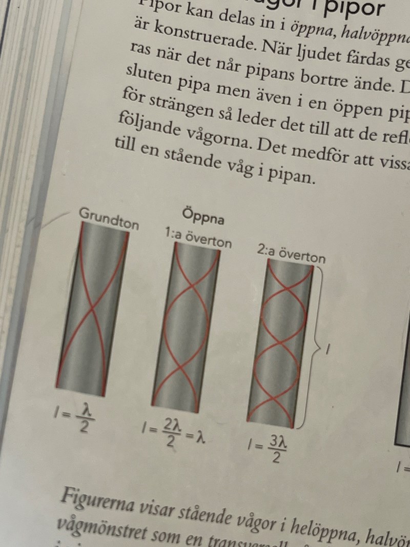 Vilka toner är möjliga i en öppen orgelpipa som är 2,4m lång ?