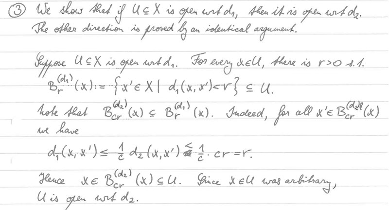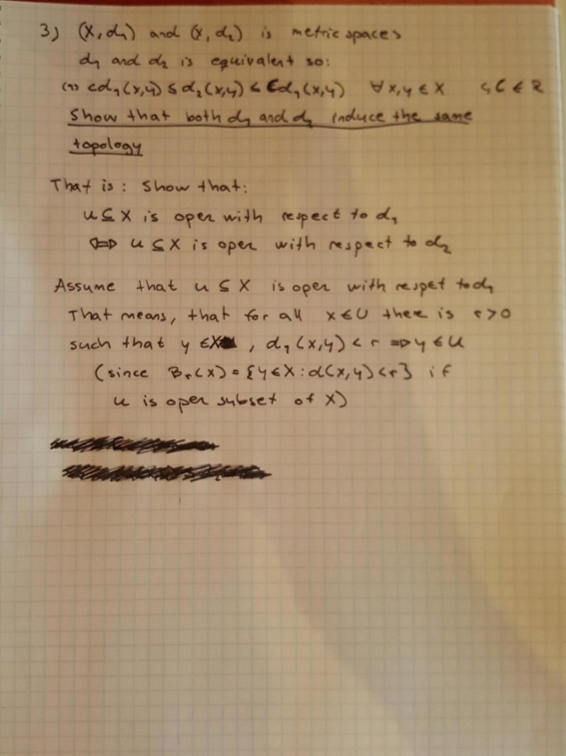 Problemet. Vi har antagit att är öppen med avseende på -metriken, och vill visa att då måste vara öppen med avseende på -metriken.