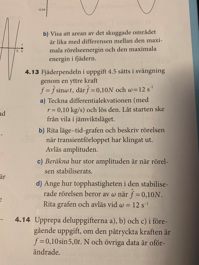 Nu skjuter jag lite från höften... (jag får skylla på att du inte visar fjäderpendeln uppgift 4.5...).