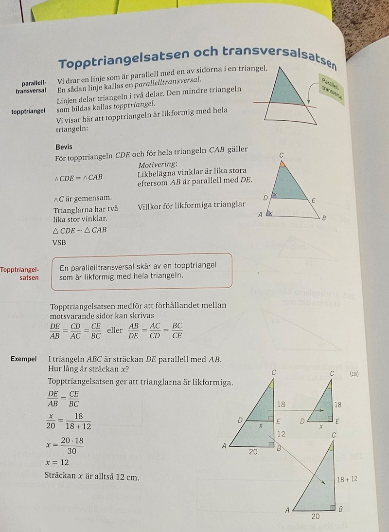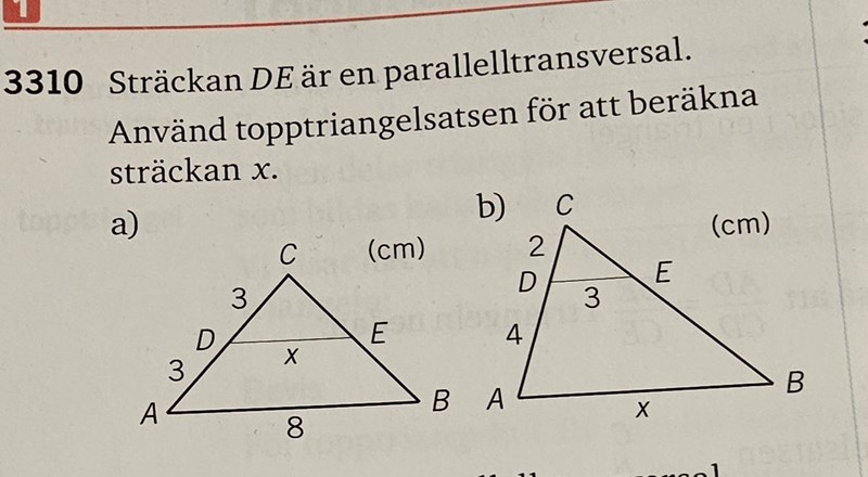 Exempel sidan visar nästan lika, varför då blir det DE/CD=AB/AC (engligt facit)
