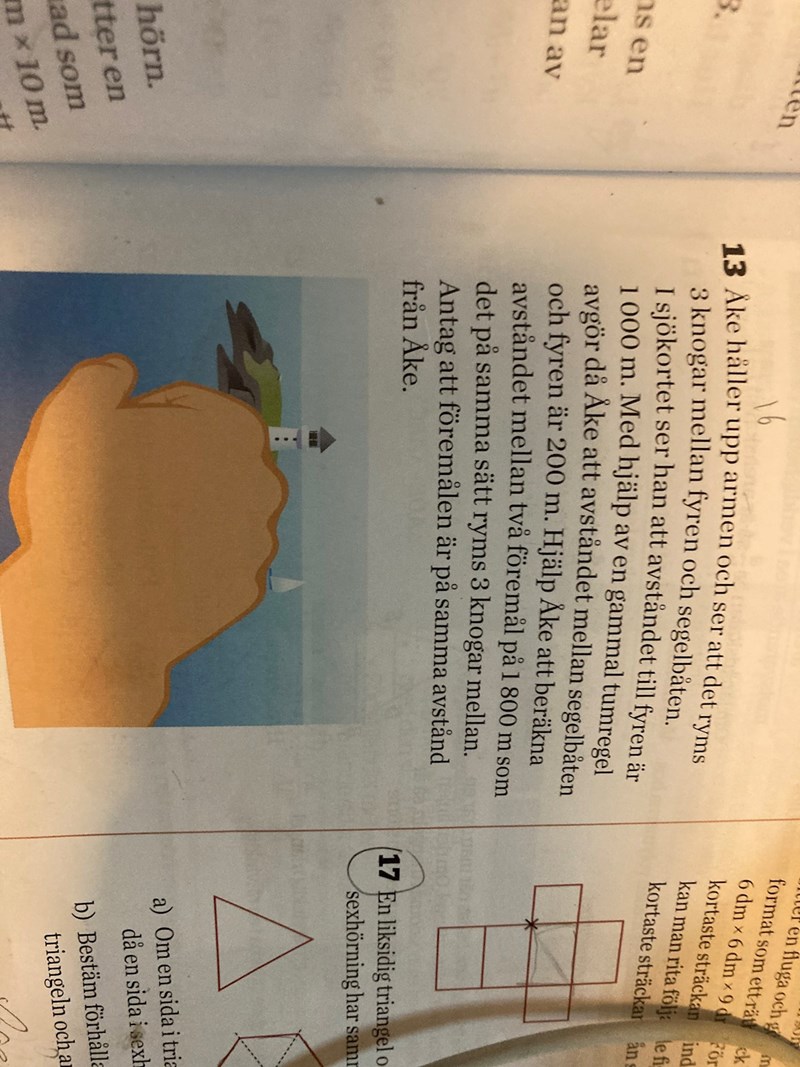 Det går inte!! Om man inte antar att vinkeln mellan linjen till fyren och linjen från fyren till båten är lika stor som motsvarande vinkel för de avlägsnare föremålen. ( Tumregeln förutsätter att vinkeln är ungefär rät). Om villkoret är uppfyllt så är trianglarna som bildas likformiga.