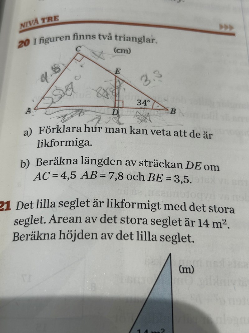 Om trianglarna är likformiga, går det nu att bestämma DE.