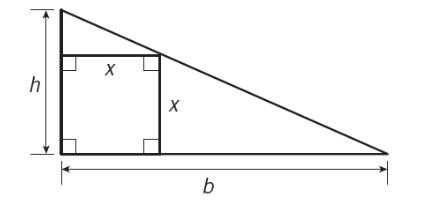 Min lösning: x blir transversal och därför kommer det bildas två trianglar. Topptriangelsatsen ger b/(b-x) = h/x, men detta är fel. Hur ska man tänka?