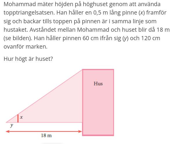 I den stora triangeln vet du den längre kateten som är 18 m.