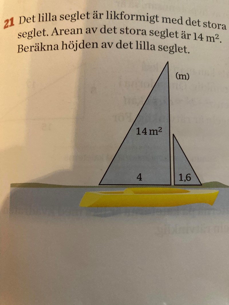 Hur hög måste masten vara, för att det stora seglet skall ha arean 14 m2?