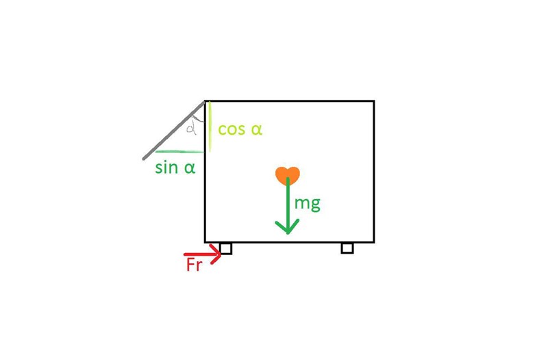 Sorry min fd post var inte så tydligt: det är inte hjul utan små stöd. Och man drar möbeln med en rep som bygger vinkel alpha.