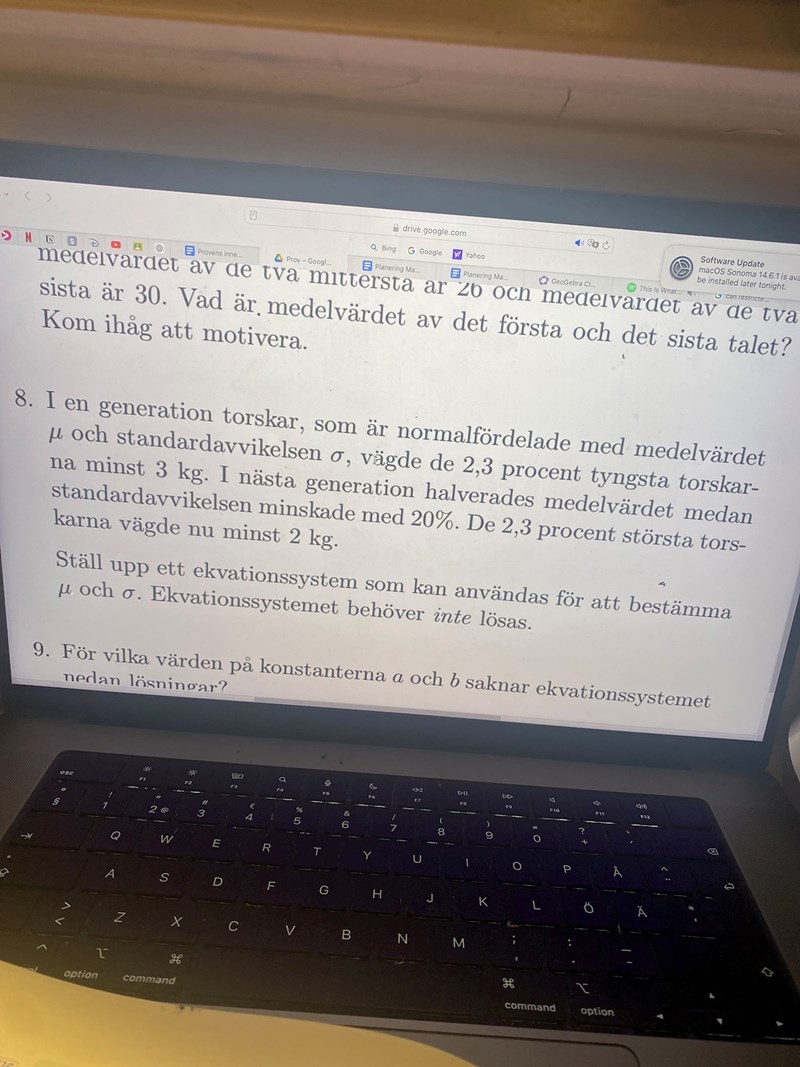 Axiom skrev:De vill att du ska hitta medelvärdet för torskarna och standardavvikelsen genom att göra en ekvation.