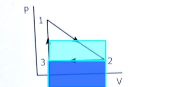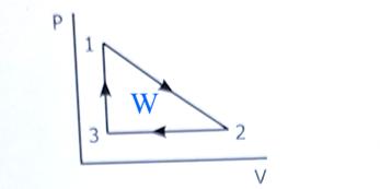 Det är arbetet W som är triangelns area i pV-diagrammet. Det är summan av dessa integraler.