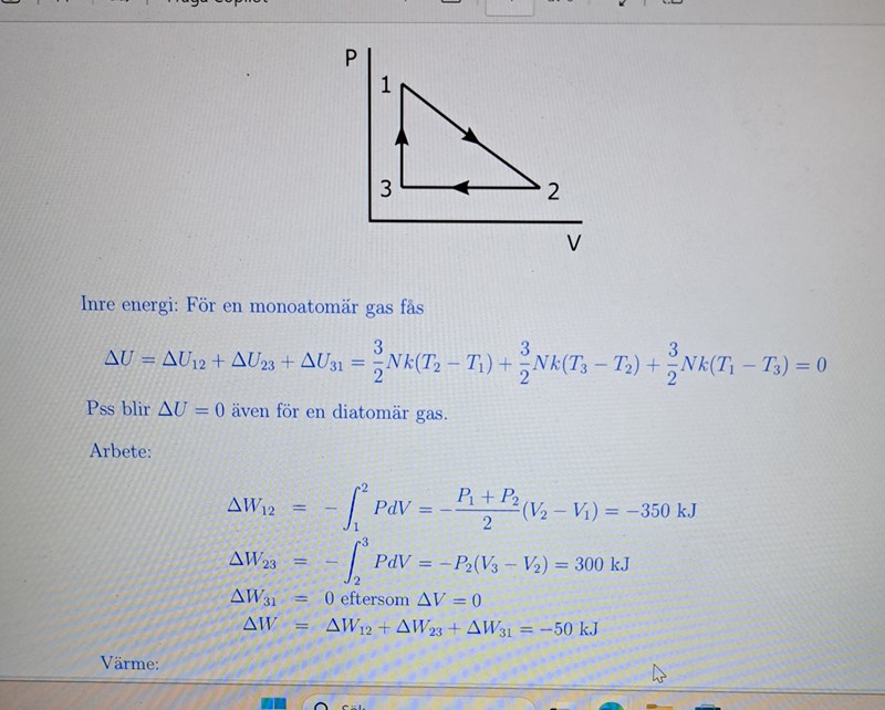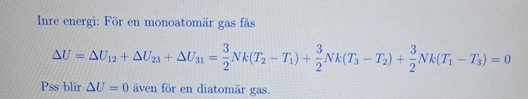 Det är just det här med inre energi som fick mig att tro det. Nu har vi två st temperaturer för att räkna ut inre energi.