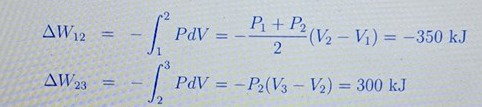 Arean under processen från 1 till 2 är medelvärdet av trycket multiplicerad med skillnaden i volym.