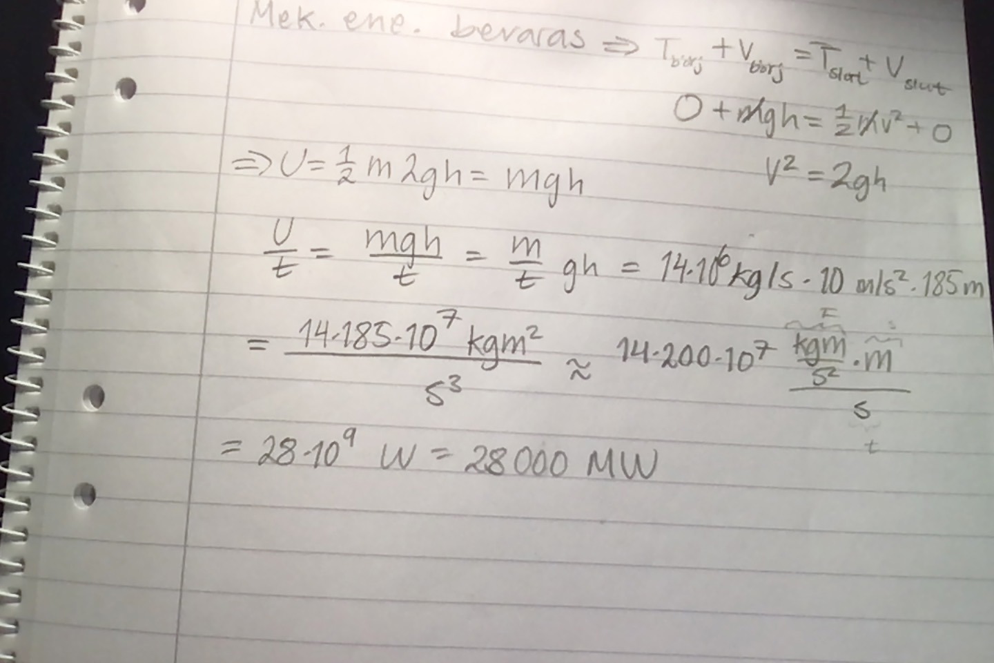 EDIT: är det rätt tolkat att 14 000 ton vatten faller 185 m per sekund?