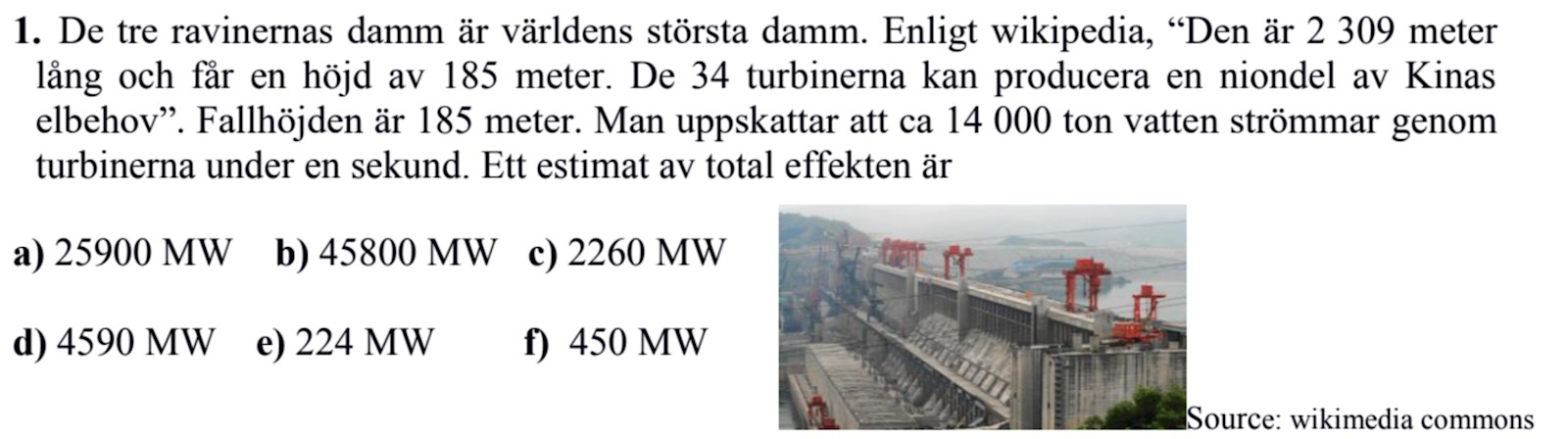 Att vattnet faller 185 m på en sekund kan man inte anta, men man behöver inte veta hur lång tid fallet tar.